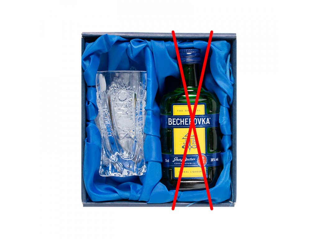 Dárková kazeta je dodávána bez lahve. Kazeta obsahuje prostor na lahev Becherovky 0,05l.
