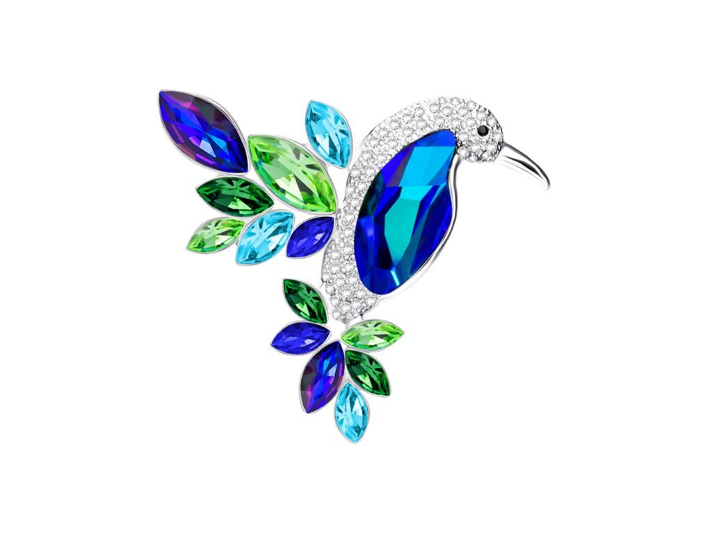 Flying Gem by Veronika, v překladu létající drahokam, je jméno bižuterní brože. Její design byl inspirován nápaditě zbarveným kolibříkem, ptáčkem žijícím na americkém kontinentu. Bižuterní brož Flying Gem by Veronika vyniká brilancí a třpytem broušených kamenů Preciosa. Kombinace modrých a zelených barev tohoto módního doplňku rozzáří každý decentně laděný společenský outfit.