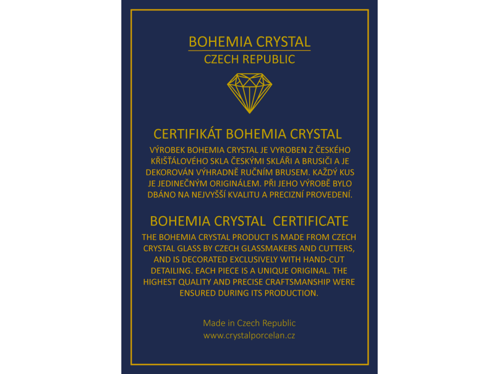 Kvalitní křišťálové sklo: Sklenice jsou vyrobeny z prvotřídního olovnatého křišťálového skla, které jim dodává nejen krásný vzhled, ale také zvyšuje jejich odolnost a tvrdost. Bohemia Crystal křišťál je skutečným skvostem pro vaše smysly.