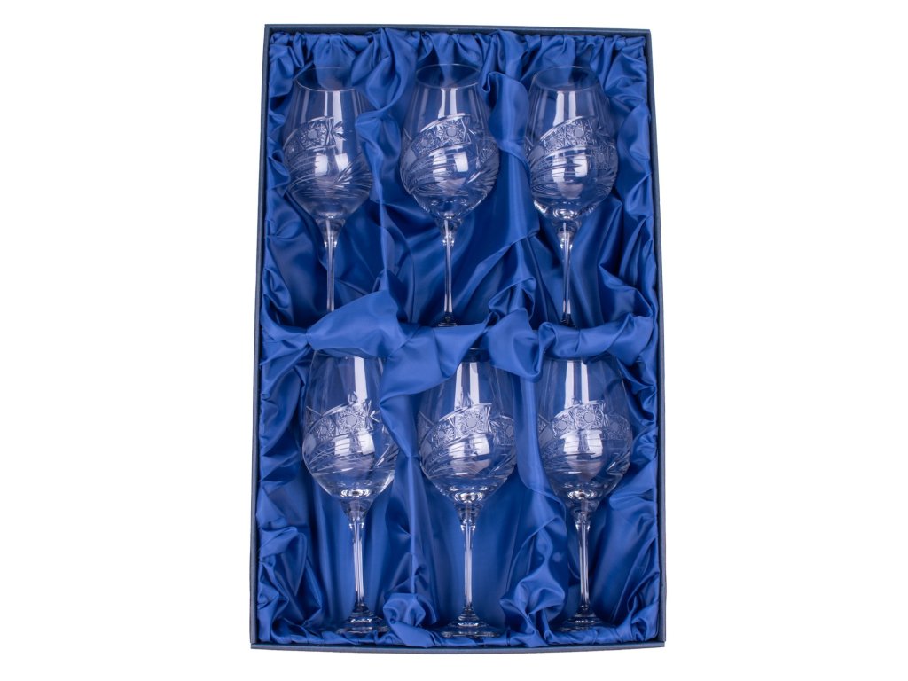Bohemia Crystal sada 6 broušených sklenic na červené víno - 450 ml brus Kometa