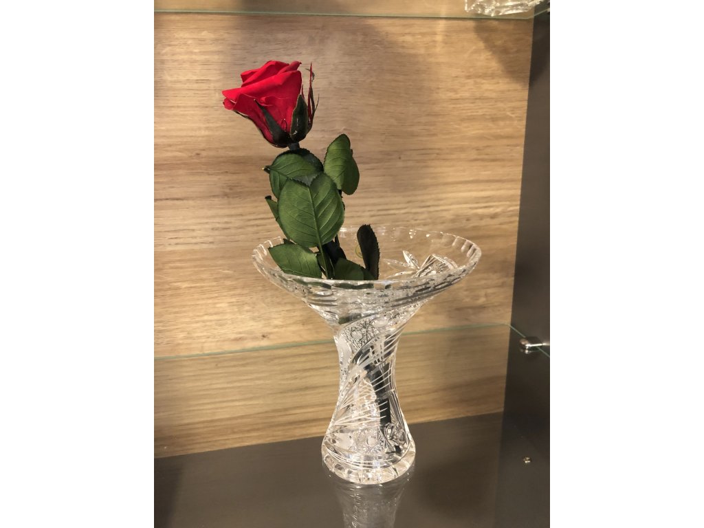 Tato váza je vytvořena z vysoce kvalitního českého olovnatého křišťálu, který je známý svou průzračností a jemným třpytem. Každý kousek je pečlivě ručně vyráběn zkušenými skláři a brusiči v České republice, což zaručuje prvotřídní kvalitu a tradiční řemeslnou dovednost, která se dědí z generace na generaci. Váza je ručně broušena brusem Větrník, který vzniká prvotním ručním broušením, poté probíhá leštění ve speciální lázni a následně ruční dobroušení a matování.