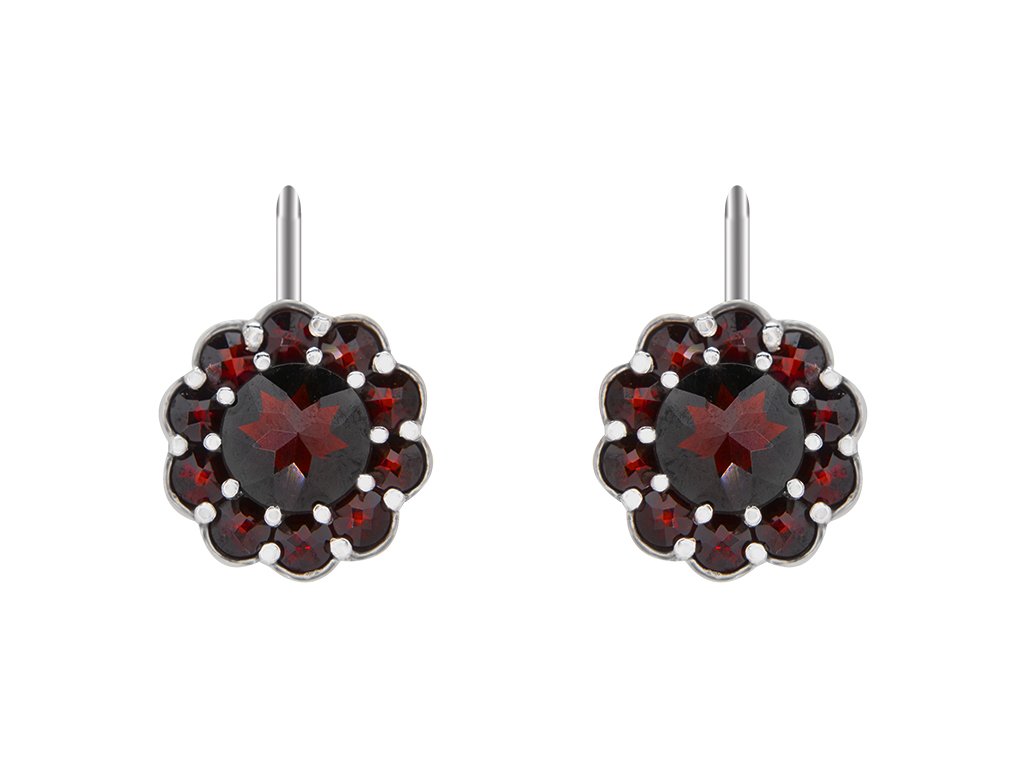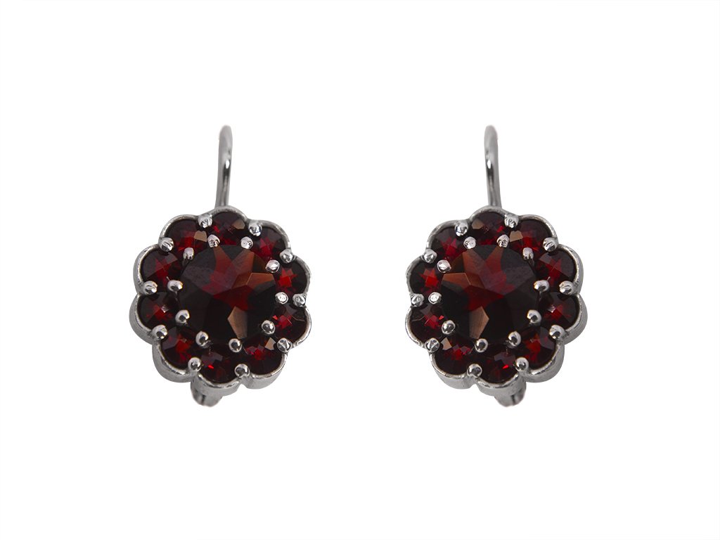 Náušnice z rhodiovaného stříbra s českým granátem a certifikátem pravosti.