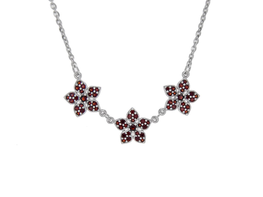 Luxusní náhrdelník z rhodiovaného stříbra s českým granátem a certifikátem pravosti.