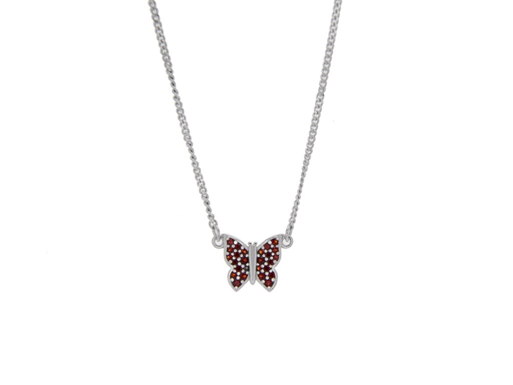 Krásný jemný náhrdelník z rhodiovaného stříbra s českým granátem a certifikátem pravosti.