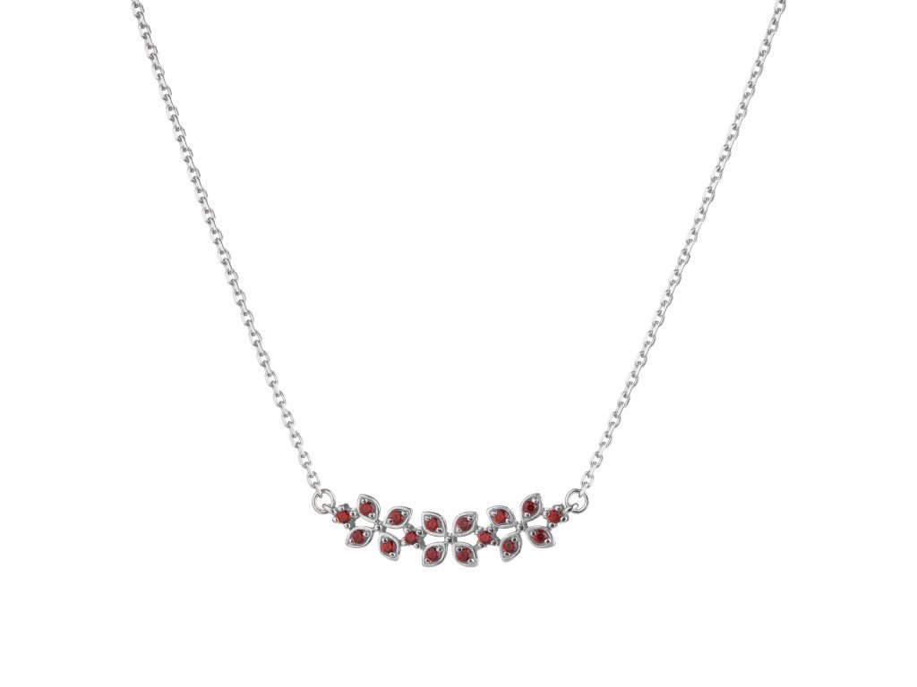 Luxusní náhrdelník z rhodiovaného stříbra s českým granátem ve tvaru květu. S náhrdelníkem...