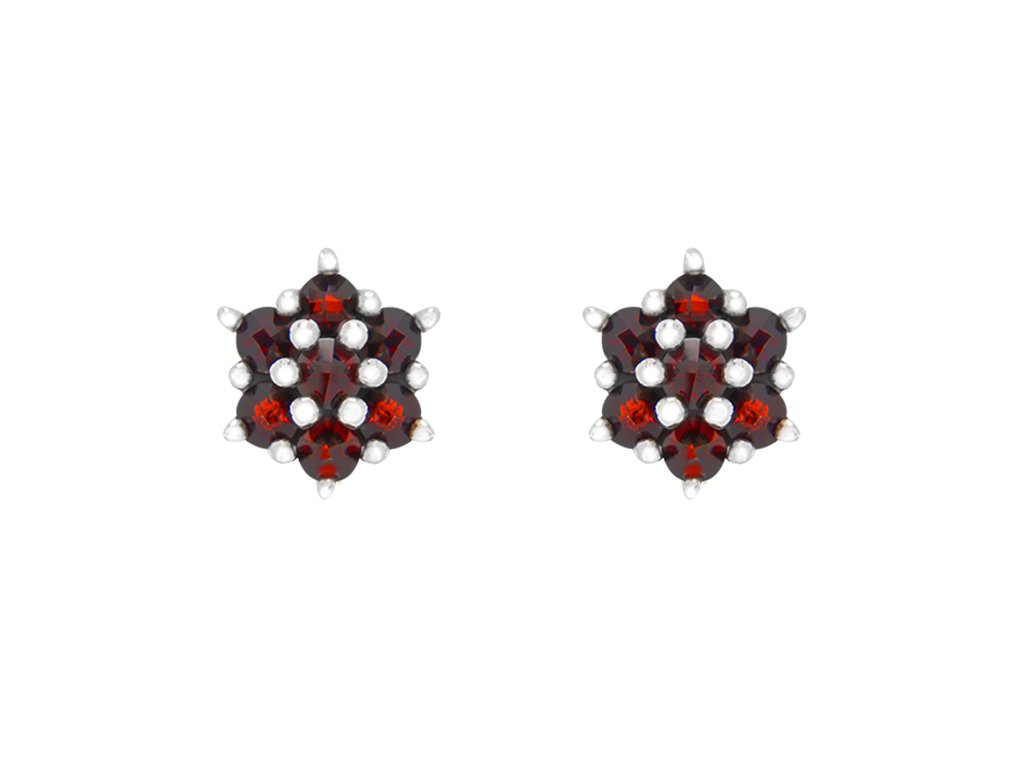 Náušnice z rhodiovaného stříbra s českým granátem a certifikátem pravosti.