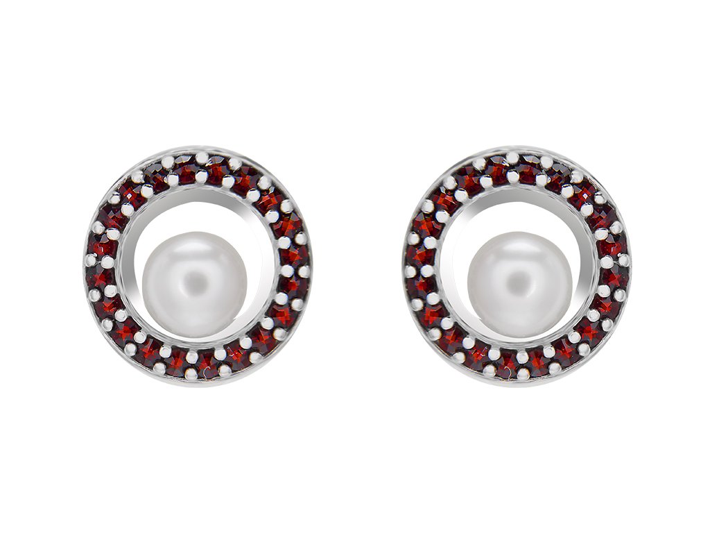 Náušnice z rhodiovaného stříbra s českým granátem s perlou a certifikátem pravosti.