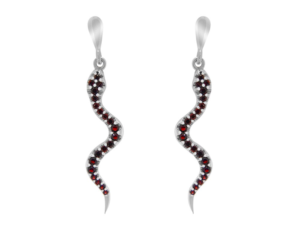 Náušnice z rhodiovaného stříbra s českým granátem a certifikátem pravosti. Zapínání na puzetu.