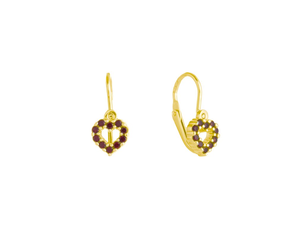 Český granát pozlacené náušnice stříbrné Srdíčka 131458Z brizura