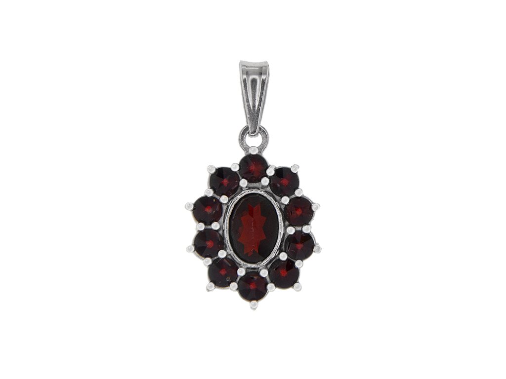Přívěsek z rhodiovaného stříbra s českým granátem a certifikátem pravosti.