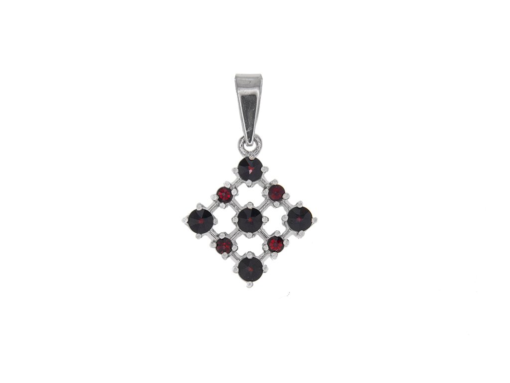 Přívěsek z rhodiovaného stříbra s českým granátem a certifikátem pravosti. Hezký módní doplněk z...