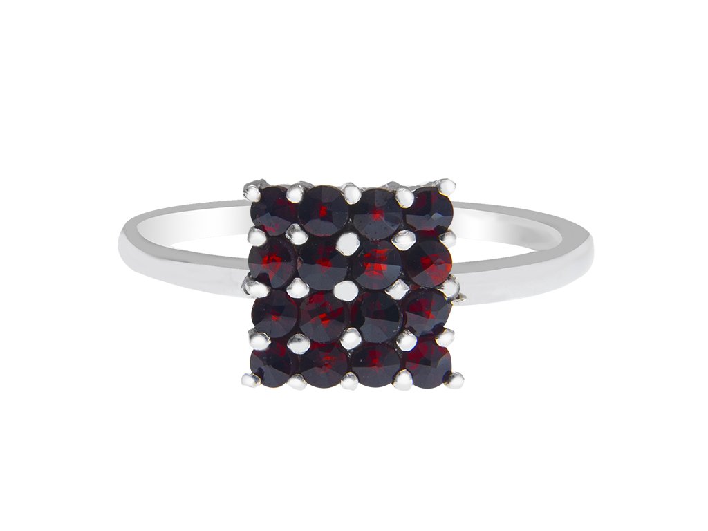 Elegantní prsten z rhodiovaného stříbra s českým granátem. K prstenu přikládáme certifikát...