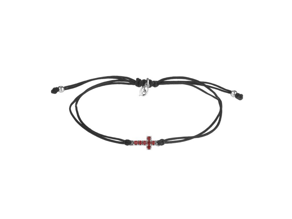 Český granát Stříbrný náramek Shamballa s českým granátem - křížek 160592