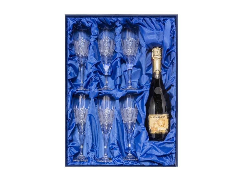 Dárková sada 6 broušených sklenic na šampaňské a Mucha sekt - brus Iris