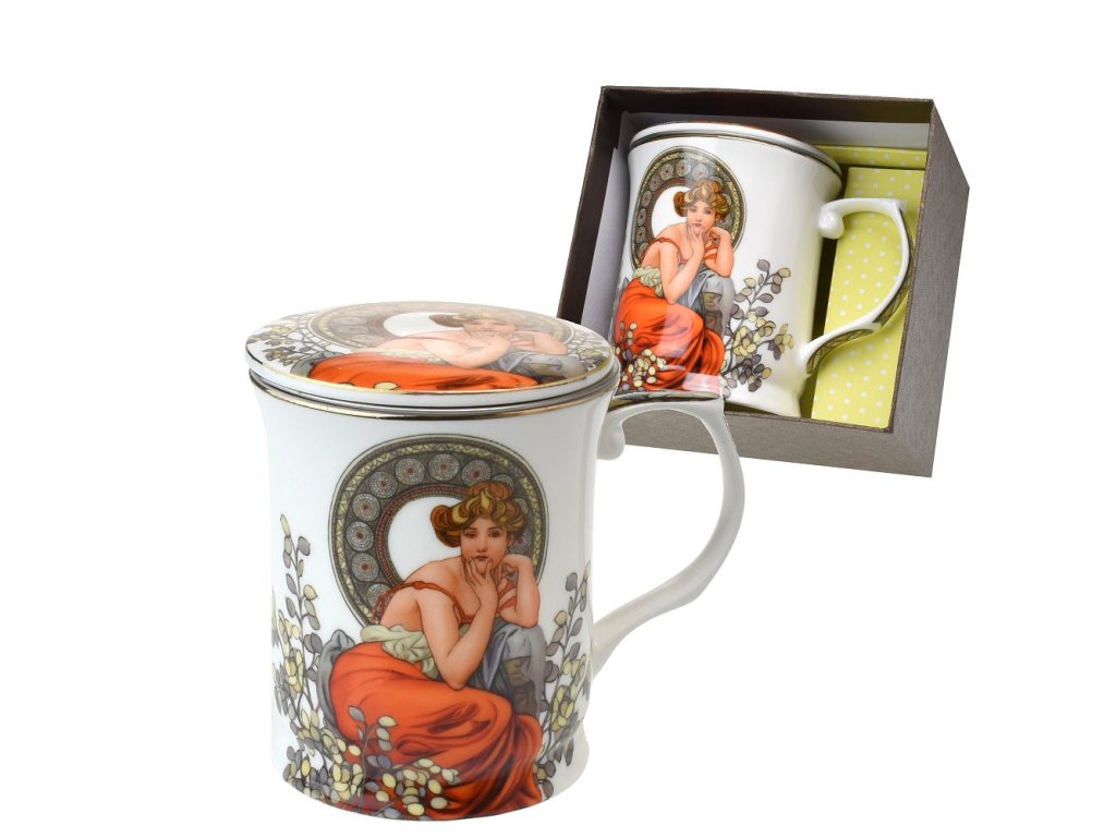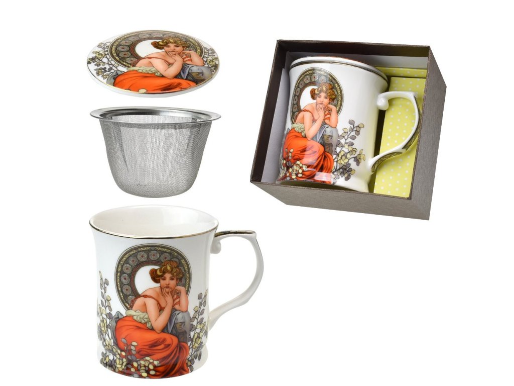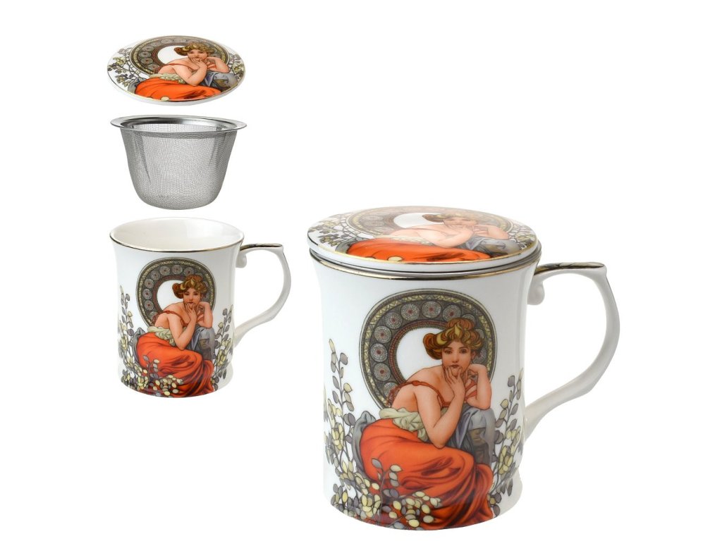 Hrnek na bylinky se sítkem a víčkem s motivem z obrazů malíře Alfonse Muchy. Krásný hrnek v...