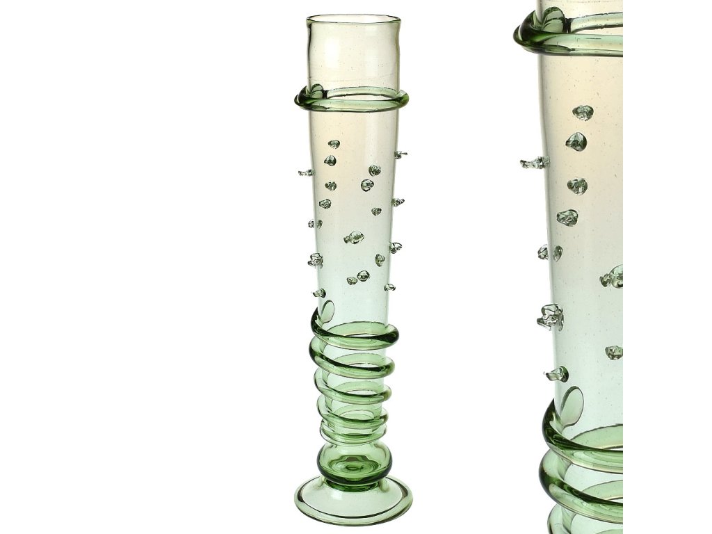 Skleněný kónický svícen - historické zelené sklo. Ručně vyráběná replika historického...