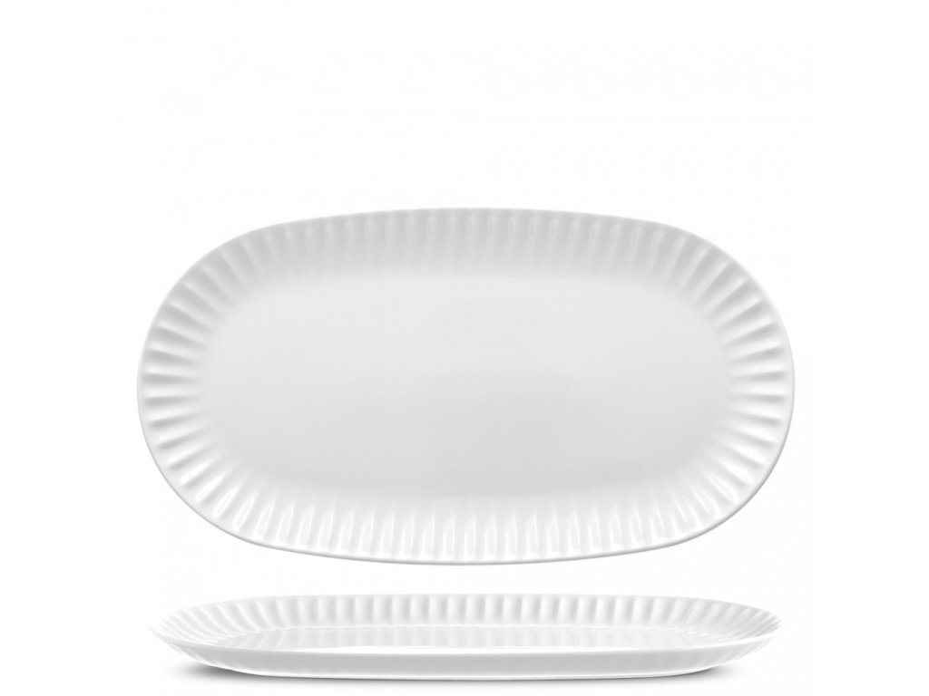 Podnos oválný Ribby bílý nedekorovaný délka 37 cm