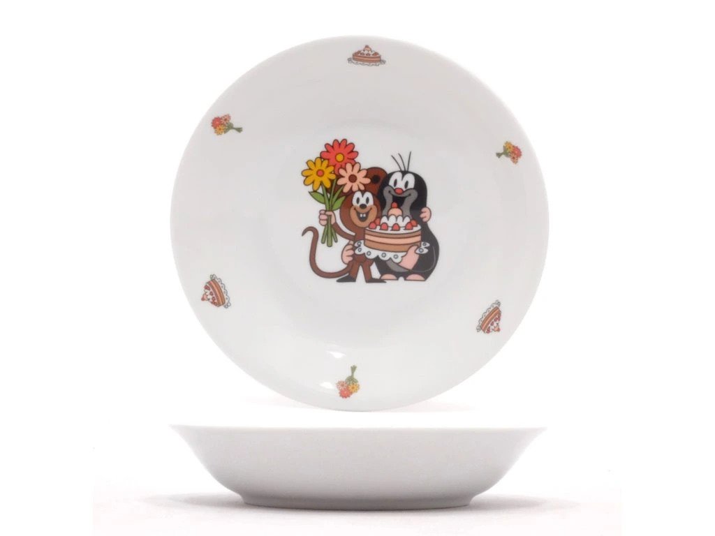 Porcelánový talíř hluboký krteček s dortem