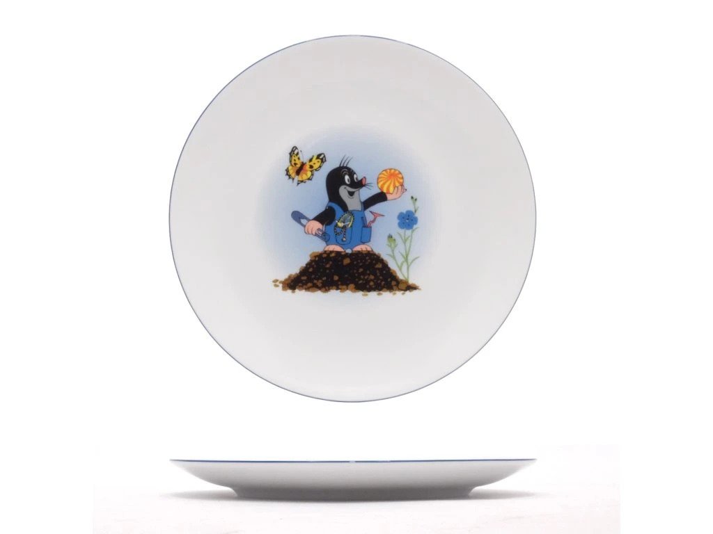 Dětský porcelánový talíř z karlovarského porcelánu s nejoblíbenější postavičkou krtečkem. Obrázek je pod glazurou, neodírá se.