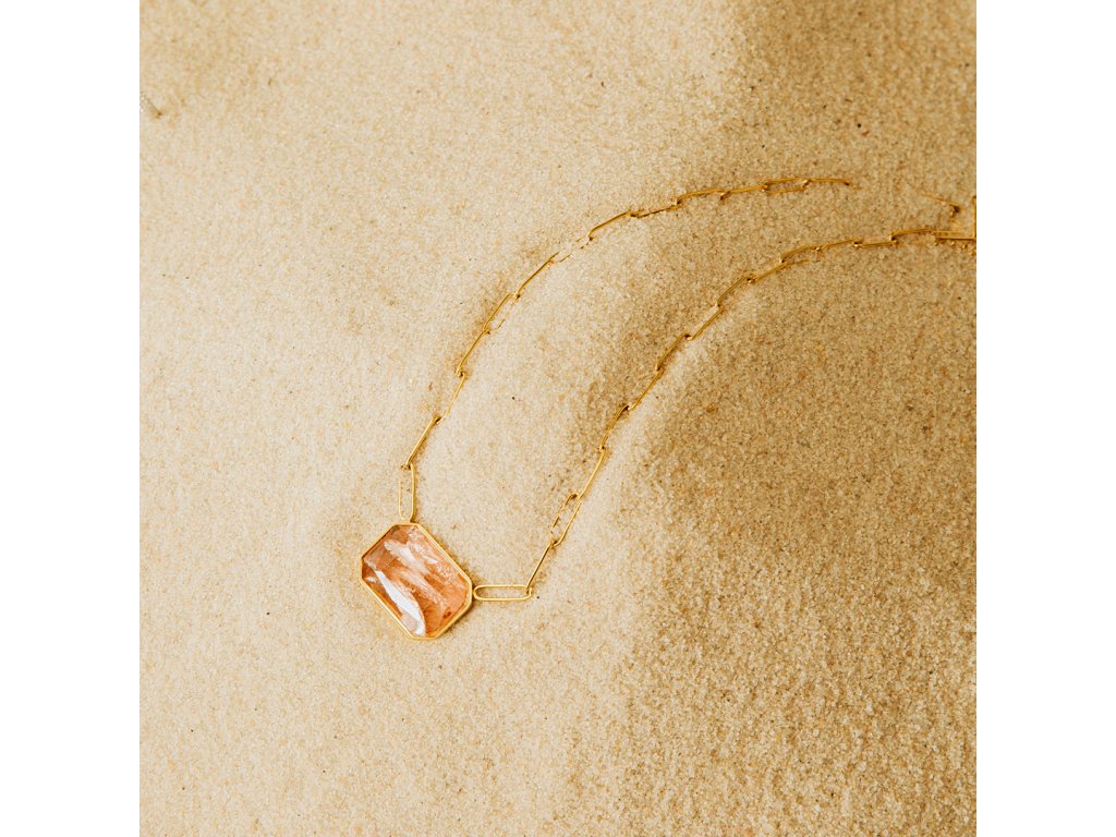 Pozlacený náhrdelník Ocean si rozhodně nehraje na nenápadný doplněk – tenhle kousek chce zazářit! Hlavní hvězdou šperku z chirurgické oceli je ručně mačkaný křišťálový kámen, který vzniká doslova v ohni – skláři ho tvarují kleštěmi nad kahanem, tradiční sklářskou technologií. Každý kus je tak naprostý originál. Uvnitř kamene se navíc blyští plátek pravého stříbra. Celý poklad drží elegantní pozlacený řetízek s výraznějšími očky.