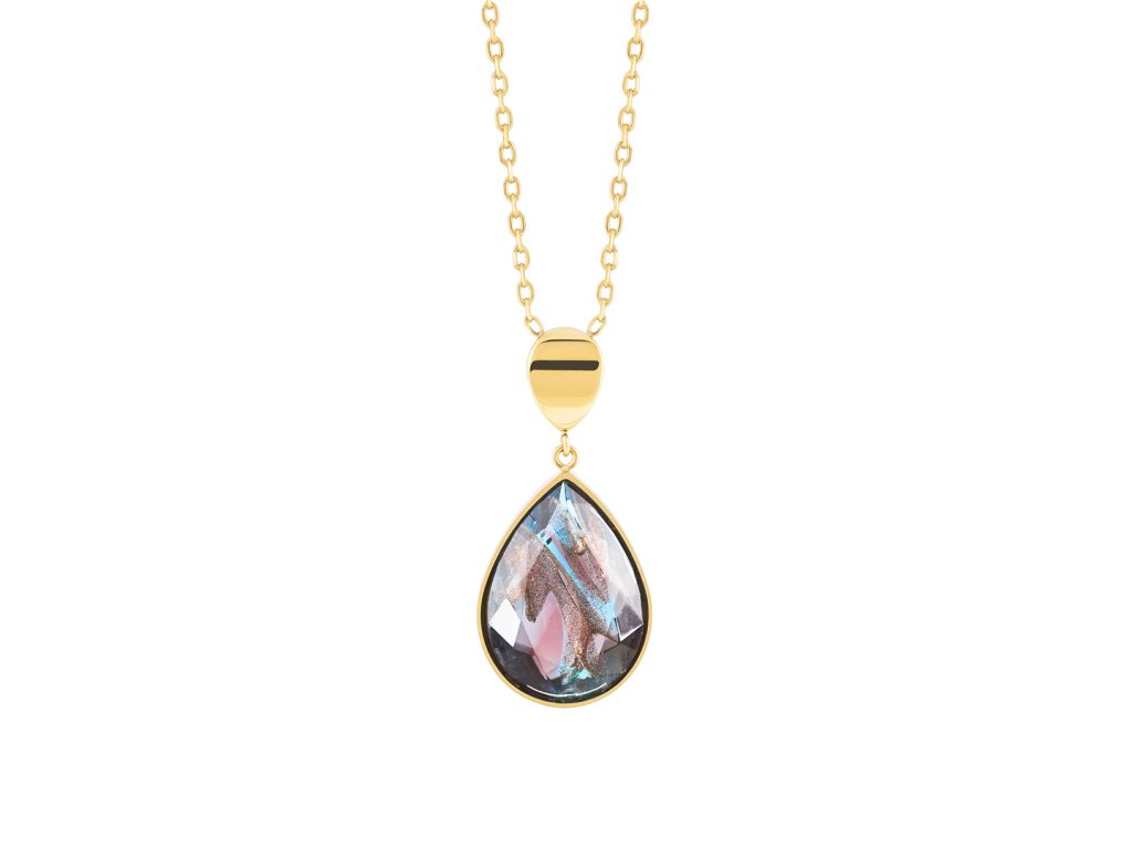Šperk, který zachycuje kouzlo světelných odlesků a proměnlivé krásy přírody. Tento náhrdelník z kolekce Spotlight spojuje pozlacenou chirurgickou ocel s ručně mačkaným křišťálovým kamenem Preciosa. Každý kámen je originál a díky ruční výrobě má svůj jedinečný charakter.