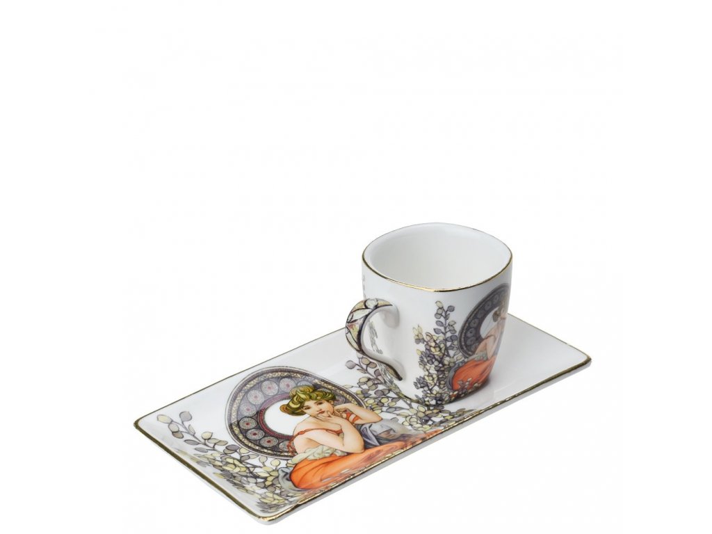 Přátelská souprava na espresso Alfons Mucha 2 x šálek 90ml s obdélníkovým podšálkem