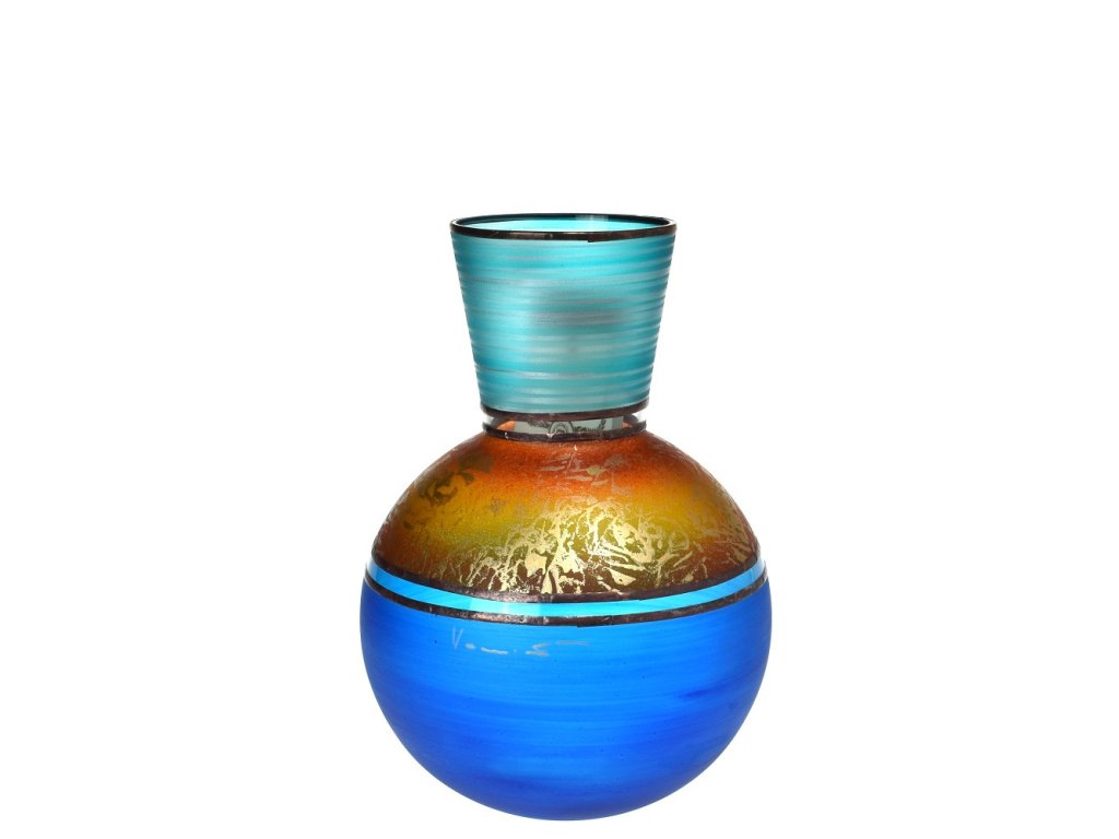 Skleněná váza na květiny baňatá - modrá, 20 cm, ruční dekorace