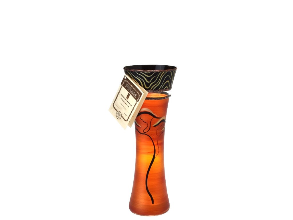 Skleněná váza na květiny - oranžová 19,5cm ruční dekorace