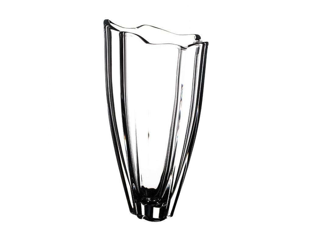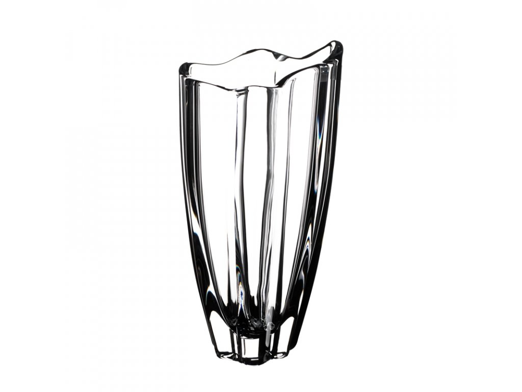 Váza Bohemia Crystalite, řada Vulcano. Výška 305 mm. Krásná váza z kolekce Vulcano inspirovaná sopečnou erupcí. Z této kolekce nabízíme vázy a mísy. Vyrobeno z nové, moderní a ekologicky čisté skloviny crystalite (crystalin), ve speciální vyšlechtěné konzistenci, v historicky ověřeném režimu, která se svými parametri vyrovná 24%-nímu olovnatému křišťálu a v mnohém ho i předčí. Do skla je přidáván titan, který zvyšuje čirost a celkovou odolnost proti opotřebení. Český výrobek. Baleno v modré dárkové krabici.