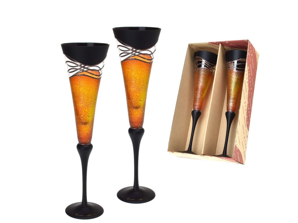 Sklenice na šampaňské 2ks. přátelská souprava - oranžová-černá, 180ml, ruční dekorace