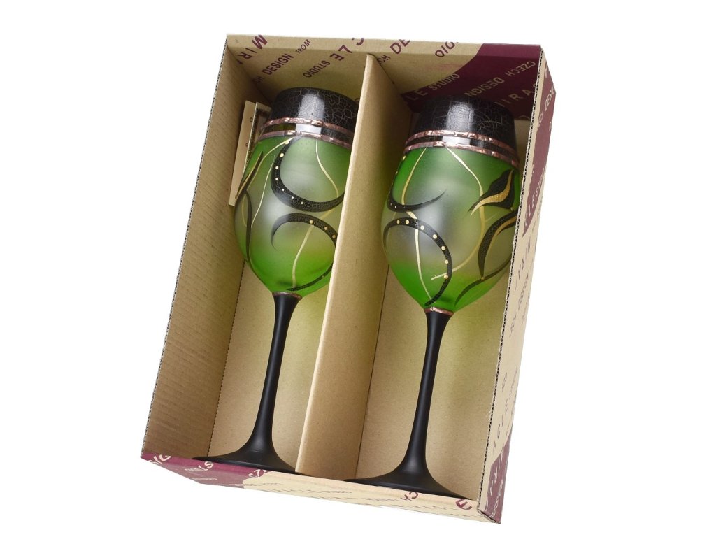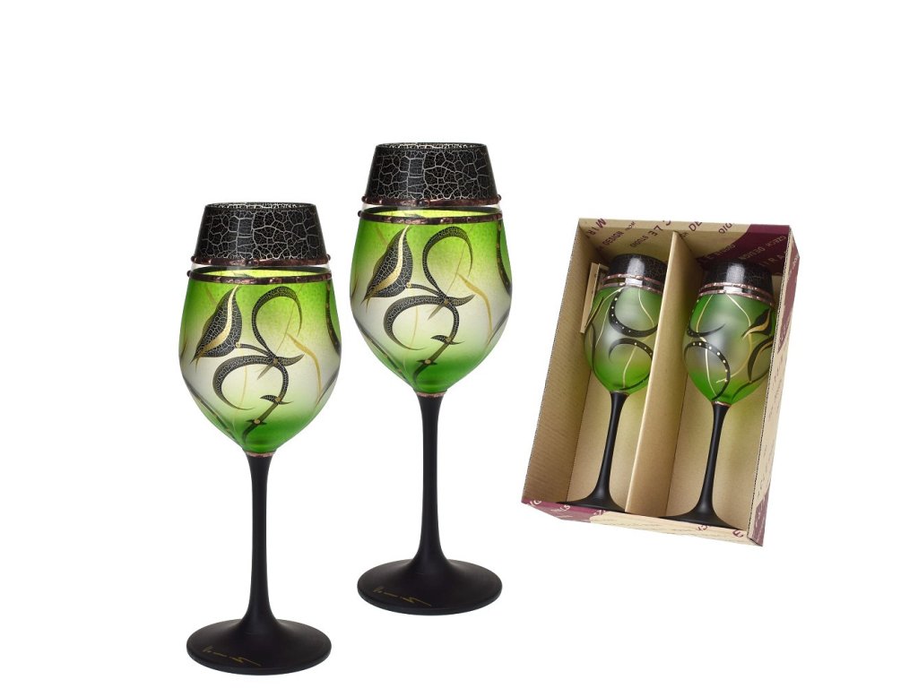 Sklenice na víno 2ks. přátelská souprava - zelené, 250ml, ruční dekorace