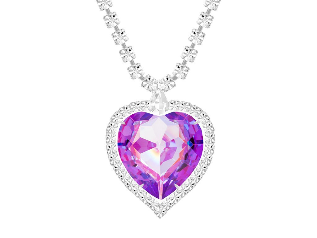 Štrasový náhrdelník ve tvaru srdce s českým křišťálem Preciosa - fialový
