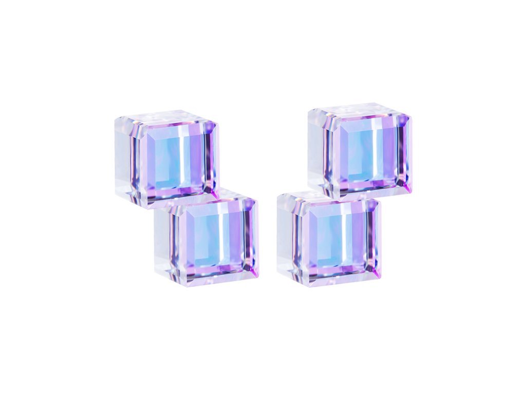 Stříbrné náušnice Crystal Cubes s českým křišťálem Preciosa - fialové