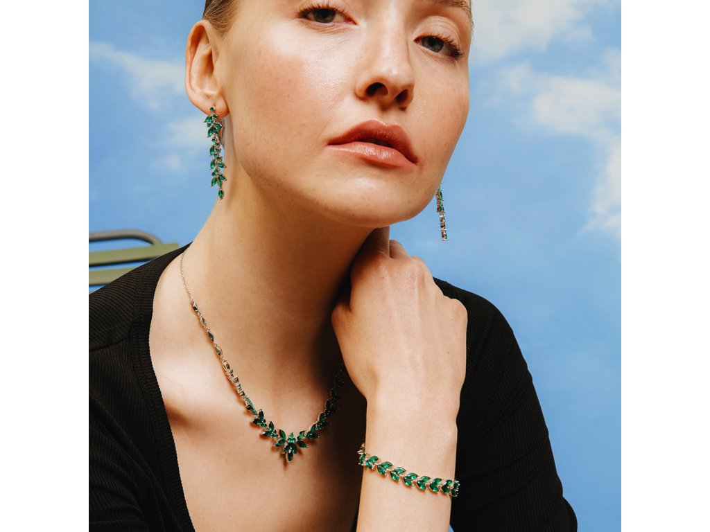 Stříbrný náramek Majestic v sobě snoubí mistrovskou práci s okouzlujícím třpytem. Tento výrazný stříbrný šperk je osazen dokonale broušenými kameny z kubické zirkonie v intenzivním odstínu emerald, který evokuje hloubku a tajemství drahých smaragdů.