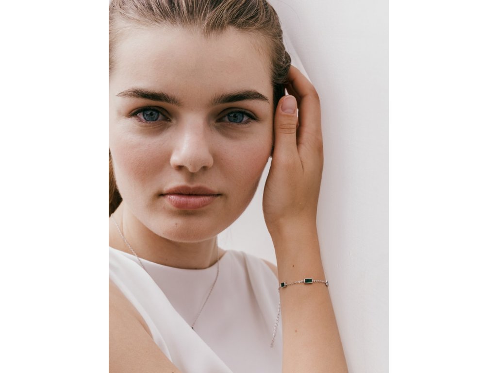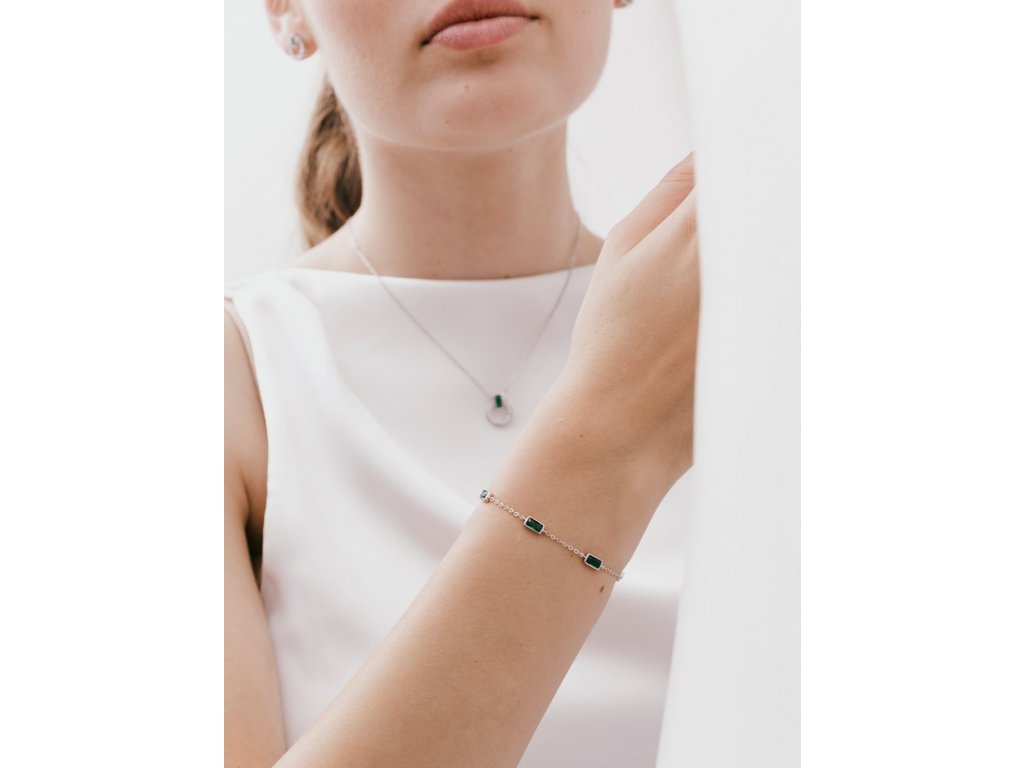 Nadčasový stříbrný náramek Sublime zaujme broušenými kameny kubické zirkonie v zelené barvě emerald. Kombinace zelené a stříbra působí luxusně. Tento elegantní šperk se hodí jak na slavnostní příležitosti, tak na denní nošení.