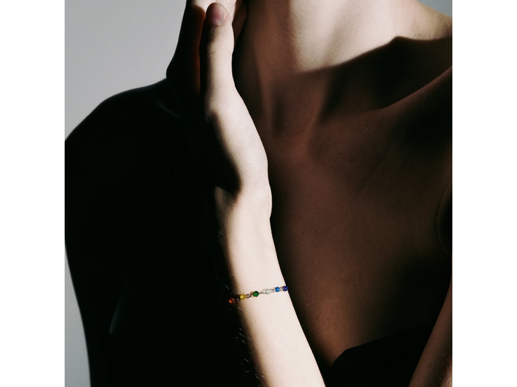 Jemný lotos, jako znak čistoty a duchovního růstu, se zde snoubí s řadou broušených kamínků z kubické zirkonie, laděných do barev sedmi čaker. Každý z nich nese svou energii – od vitality a síly, přes kreativitu, sebevědomí a lásku, až po intuici a duchovní rovnováhu.