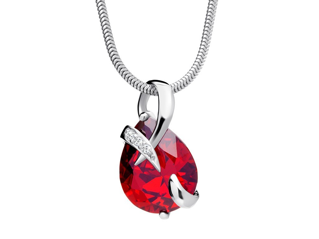 Krása rudého broušeného křišťálu, který je obepnut smyčkou z módního rhodiovaného stříbra. Jemná linka zdobená kameny z kubické zirkonie, která hřejivě objímá chladný kámen.