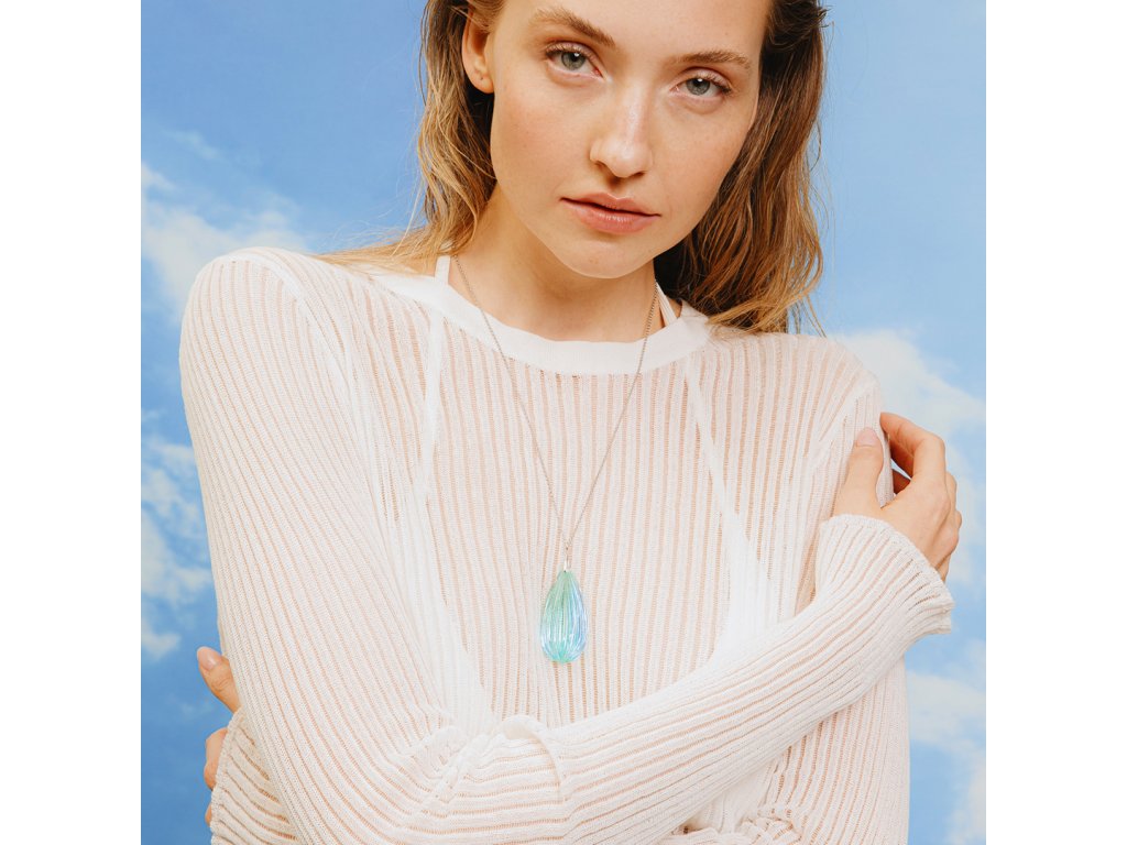 Stříbrný přívěsek Waterfall je jako zhmotněný okamžik padající vody – jemný, osvěžující a plný pohybu. Jeho dominantou je ručně mačkaný skleněný kámen v odstínu modré, který evokuje proud živé vody ve vodopádu. Díky jemné duhové vrstvě získává kámen měňavý efekt, který se s každým pohybem mění a třpytí jako sluneční paprsky na hladině. Tento unikátní šperk vzniká tradiční sklářskou technologií – ručním mačkáním v kleštích nad kahanem v dílnách Preciosy. Jedná se o největší velikost křišťálového kamene, kterou lze touto technologií v kleštích odmáčknout. Každý vzniklý kámen je ruční práce a originál.
