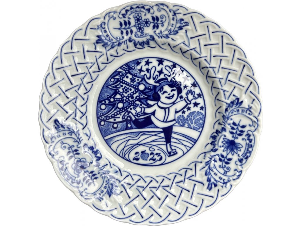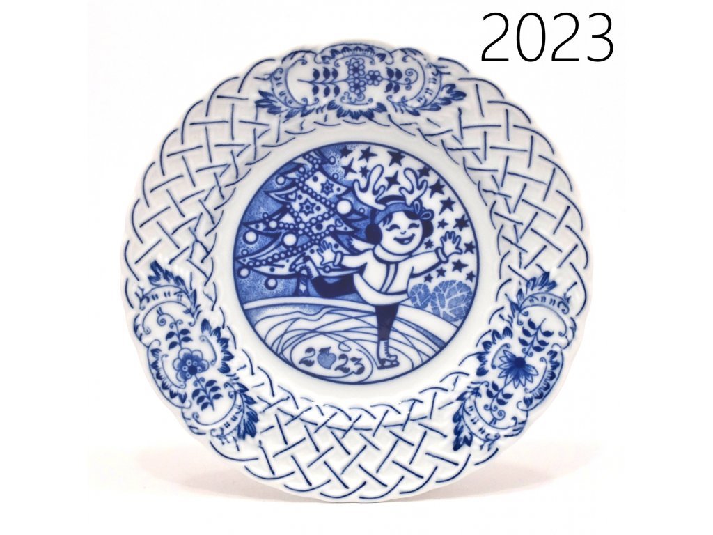 Talíř závěsný prolamovaný výroční pro rok 2025 z originál cibuláku. Sběratelský výroční talíř,...