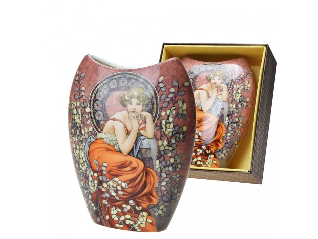 Porcelánová váza s motivem z obrazů našeho světoznámého malíře Alfonse Muchy. Krásný dárek, který potěší, nebo si udělejte sami radost. Vkusná dekorace na váš stůl. Baleno v nádherné ozdobné dárkové krabičce.